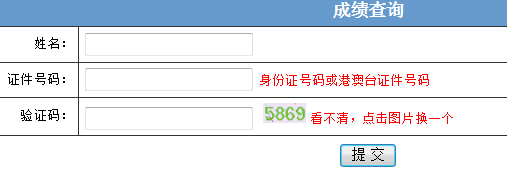 3、输入“姓名、证件号码及验证码”点击查询即可查询2015年广西成人高考成绩。其中证件号码可以是身份证号码,也可以是港澳台证件号码。验证码为系统自动生成。